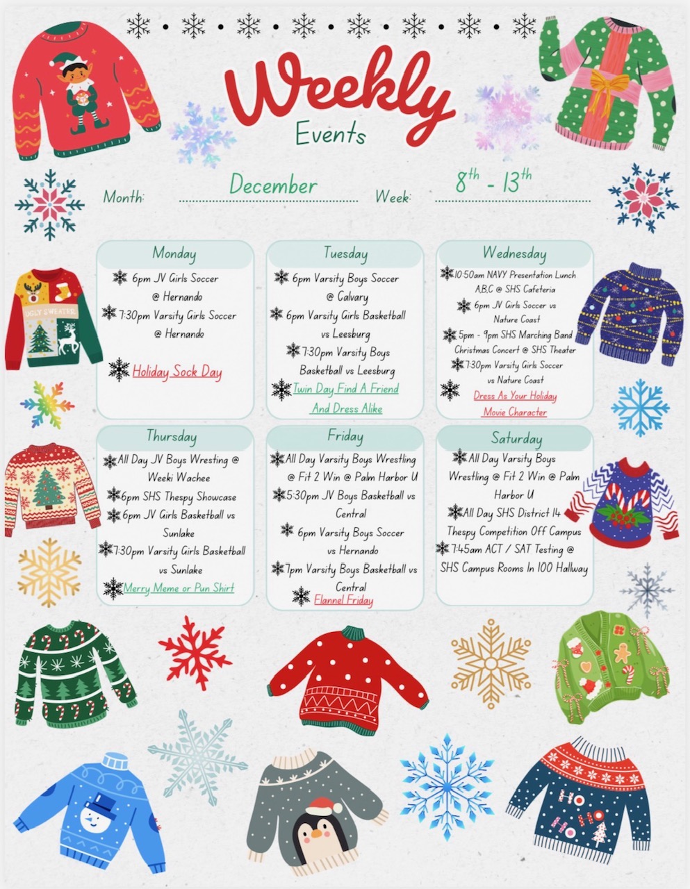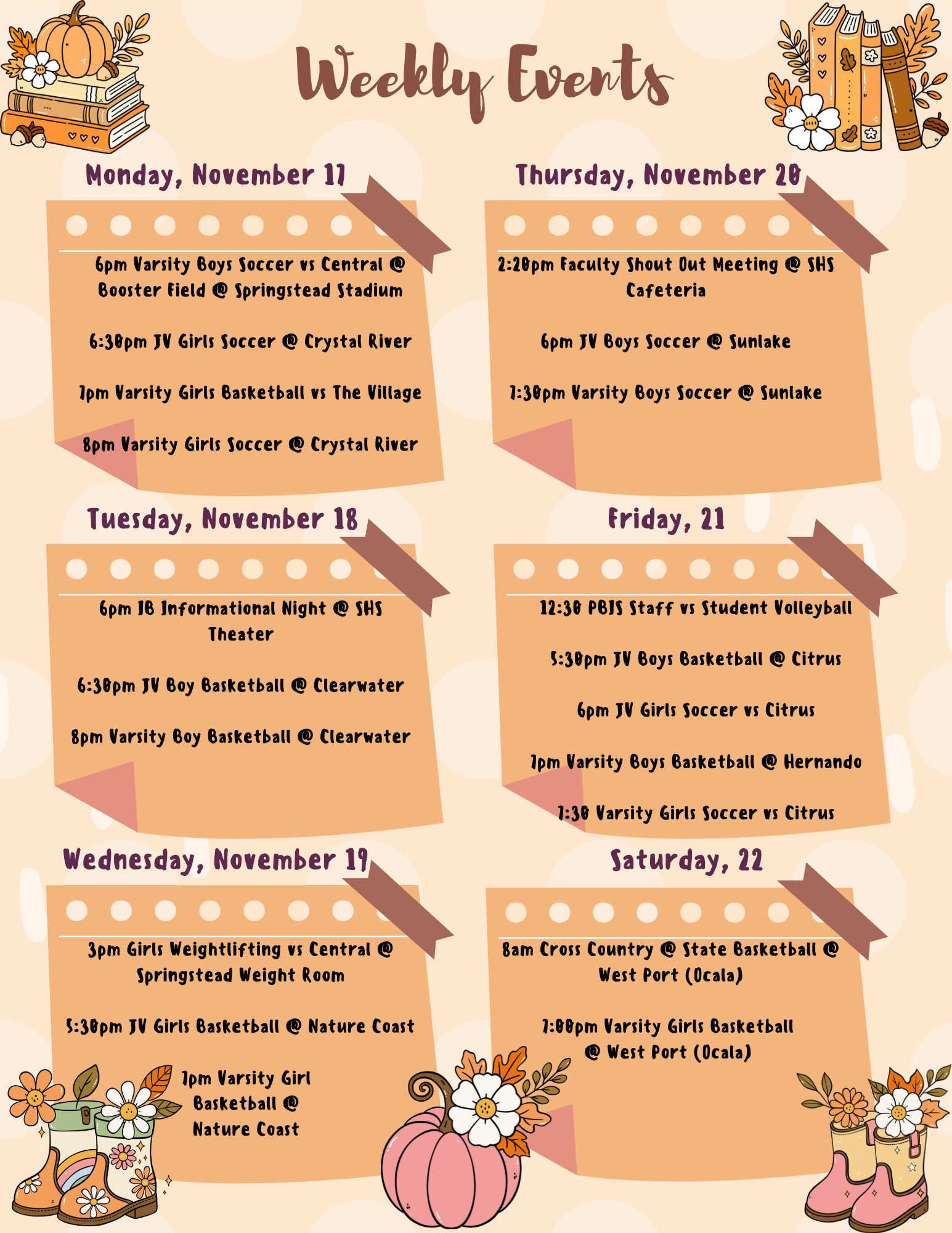 Weekly EventsNovember 24-28, 2025Thanksgiving Break - No School
